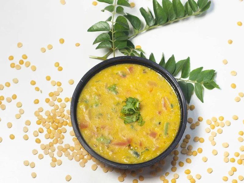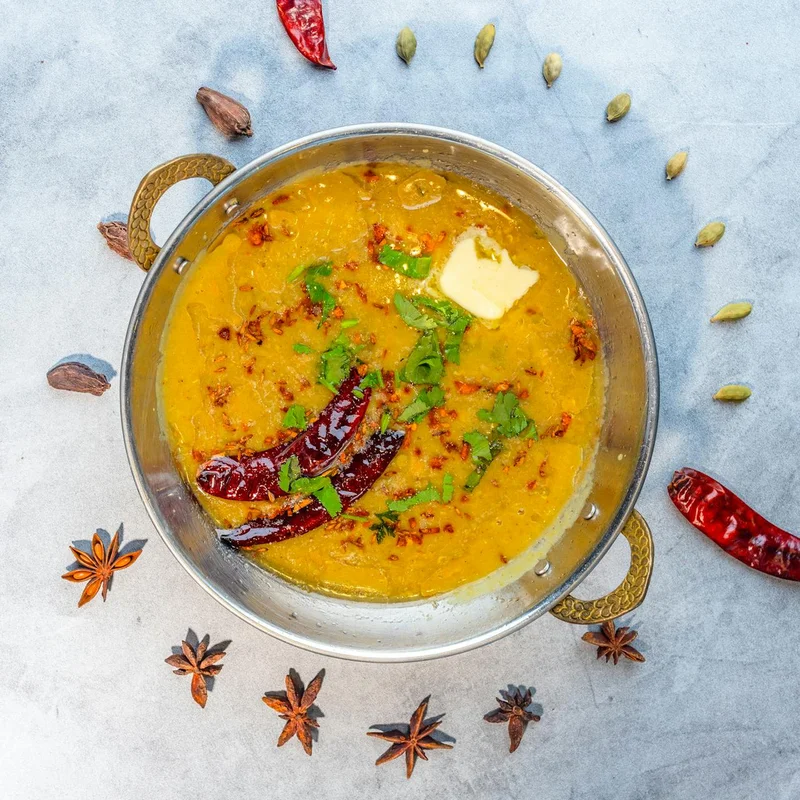 5. Dal Tadka – Yellow lentils or Dal tadka is a comfort food for many with a fiery tadka of ghee, garlic, and red chilies in it. This dal is poured over steaming rice or scooped with warm roti, it’s soulful, hearty, and 100% satisfying. It is also best eaten with papad, pickle and salad.
