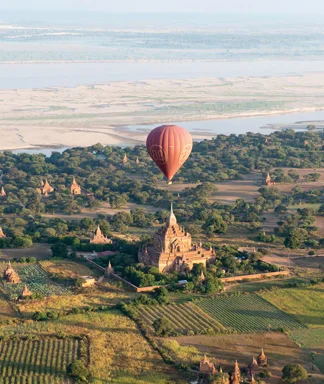 HOT AIR BALLOON OVER THE IRRAWADDY RIVER