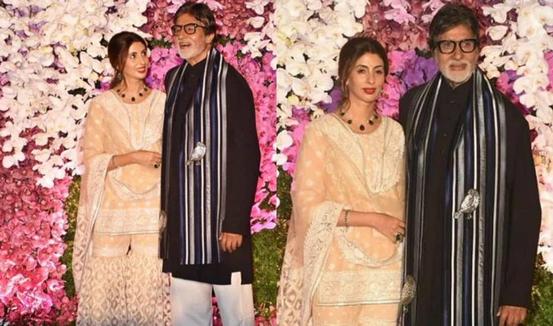 Actor Amitabh Bachchan shares a laugh with daughter Shweta Bachchan.