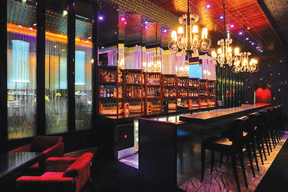 Located at the Taj Palace Hotel, The Blue Bar is adjacent to the famous Vietnamese restaurant, The Blue Ginger. The Blue Bar, unlike its name, has nothing blue about it. The ambience of the place draws you and soaks you in its energy. The bar is very elegantly done up, with chic interiors and bright purple lighting. The place has both inside and outside seating areas. If you prefer to have your drink standing, you can enjoy it by the long bar while admiring the finest range of liquor, or you can enjoy sipping your drink on the comfortable couches. The inside section has a DJ console placed at the right height for playing house music. The outside has an alfresco seating area, providing a view of the lawn, and a pool for all those who just want to enjoy a conversation. One must try The Blue Bar’s signature cocktails, prepared by bartender Nicholas Hawkins, such as Leftfield which has Tanqueray gin and aged balsamic vinegar with elderflower cordial. If you are experimental enough, you should try Open Sesame, a combination of sesame seeds muddled with vanilla sugar, honey and fresh pineapple, shaken with Makers Mark bourbon. Nick also provides some unique flavors with his Cigar Infused Woodfords Reserve Manhattan. If you want to hit the weekend with the right mood, try visiting The Blue Bar.