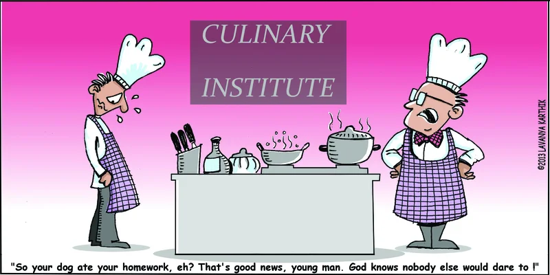 “So your dog ate your homework, eh? That’s good news, young man. God knows nobody else would dare to!”