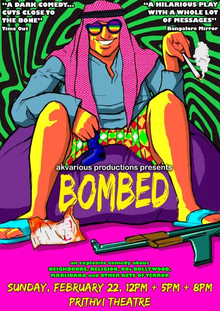 As the lights dim and the soft hum of conversation dies down to absolute silence, the stage is every cleanliness freak’s worst nightmare. Candy wrappers, a solitary shoe and lots of trash lay strewn on the floor along with a bright green bean bag, and a messy desk. The stage is divided into three different areas, each clearly a designated space for three of the four characters in the play. Zameer (a.k.a Zed) is your average young miscreant with a fondness for marijuana and a taste for Hindi movies of the 90s. His landlady, Fiona is your conventional Goan aunty who has quite a temper, an occasional affinity for weed and speaks fondly of her late husband with staunch stereotypical views on nearly every other community in her vicinity. Yogi is the young and struggling Bihari actor who is religious, determined to make it big as an actor, shares Zed’s keen interest in classic 90s film and calls him his best friend. These three are perfectly content minding their own business and living their peaceful lives until inspector Damle comes barging into Zed’s apartment, interrogating him about his step-brother Zafar who is a suspected international terrorist. Their lives are thrown into turmoil as Damle feverishly tries to make Zed an informer , inevitably dragging in Aunty Fiona and Yogi while he is at it.