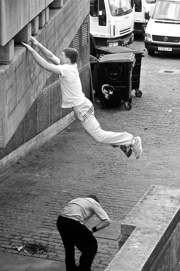 3. Training: Practicing parkour. A traceur doesn’t ‘do’ parkour, he/she trains it