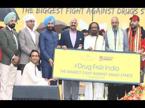 The ‘Drug Free India’ campaign, which is reportedly the largest of its kind, was launched at Chandigarh University on Monday where nearly 30,000 students took a pledge to stay away from drugs with the slogan, “Drugs na karunga na karne dunga”. Those in attendance included Art of Living founder Sri Sri Ravi Shankar, Punjab Governor V P Singh Badnore, pop singer Badshah, comedian Kapil Sharma and actor Sanjay Dutt among others.