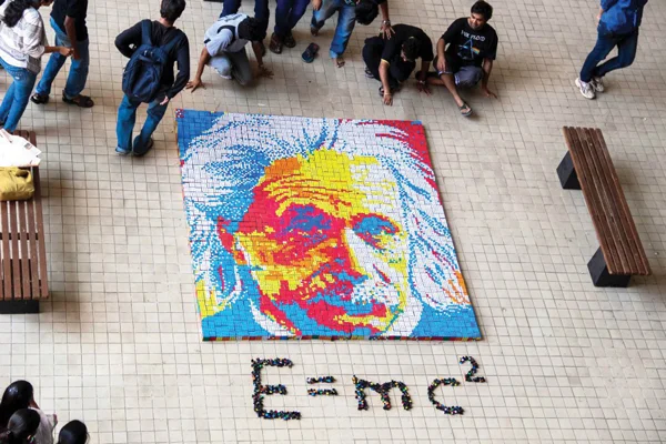 (L to R) 2112 Rubik’s cubes come together to make a striking portrait of Einstein; a scene called ‘ Rajya Abhishek’ from Chhatrapati Shivaji’s life is enacted; models take the glam quotient high in the fashion show
