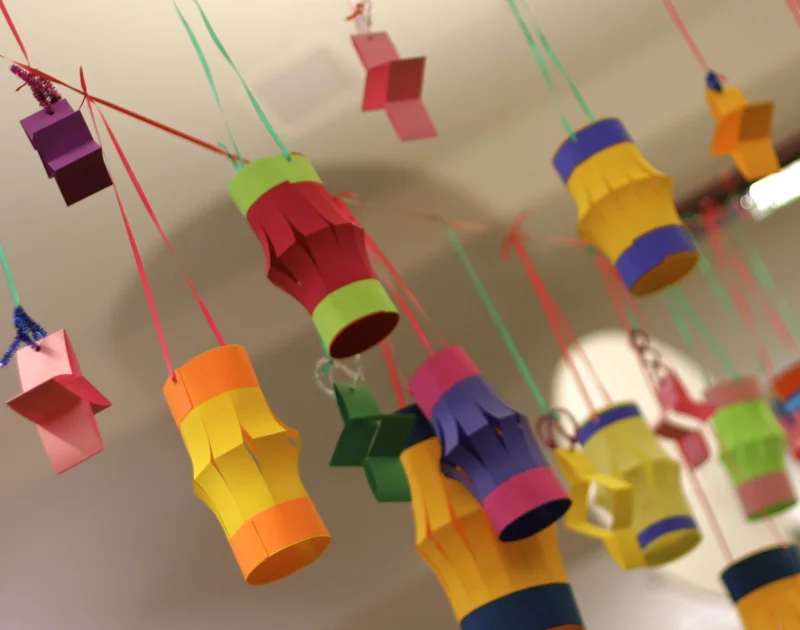 • Cut the coloured paper into strips and glue it to the top of the stick to form the flower’s pistil.