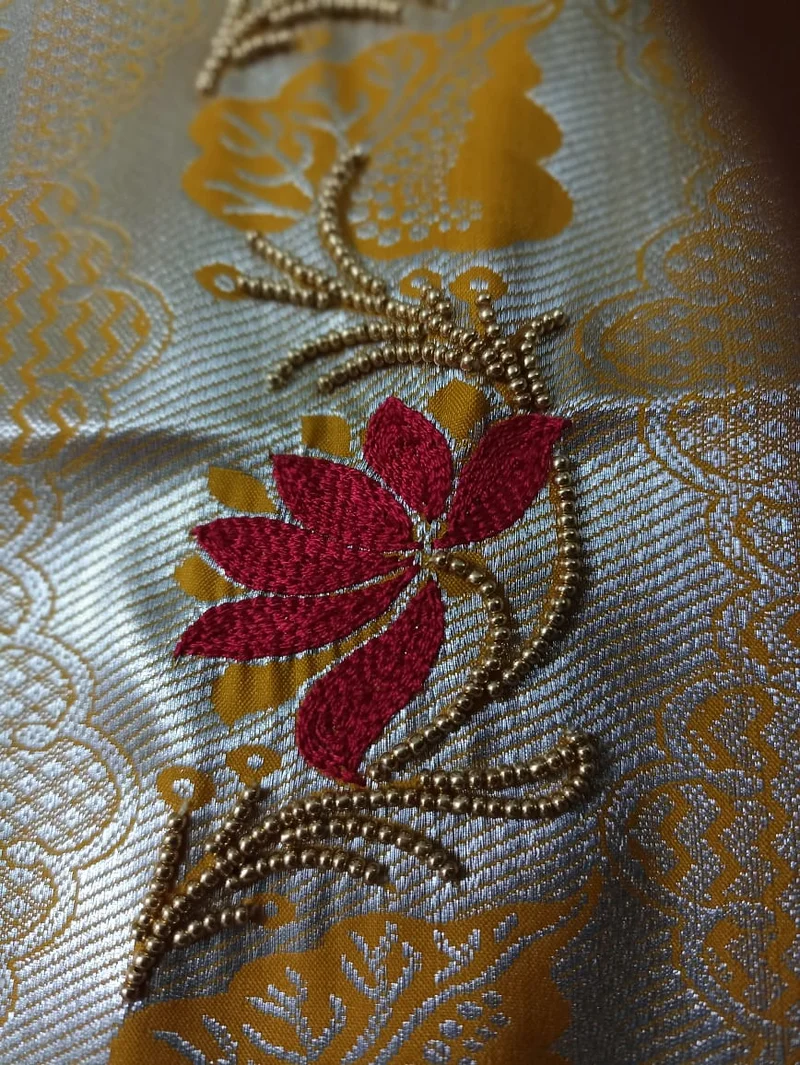 Zardosi embroidery, which dates back to the 16th century during the Mughal era, is considered the height of opulence and grandeur. The name “Zardosi,” which has Persian origins, combines the words “zari,” which means gold, and “dosi,” which means embroidery, alluding to the elaborate use of gleaming golden and silvery threads. The most opulent textiles of the day, such as pure velvet and silk, which were reserved only for the royal class, allowed this embroidery artistry to flourish. Real precious stones and pearls were frequently used by Zardosi artisans to adorn their creations, adding a stunning touch of luxury and heightening their allure. Each Zardosi embroidery piece embodies a royal grace fit for historical kings and queens, transforming fabric into a work of art worthy of hanging in a mahal’s halls.