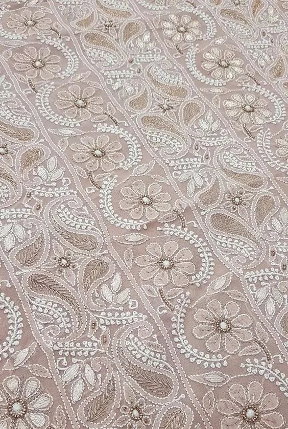 Chikankari embroidery is an ancient craft that originated in Lucknow, Uttar Pradesh, in North India. It is thought to have been brought to the region by the empress Nur Jehan. Chikankari, which is well-known for its elaborate white-on-white details, is a testament to exquisite craftsmanship, delicately adding floral motifs to fabrics like organza, cotton, and silk. To accommodate the intricate stitching process, the fabric used for this type of Indian hand embroidery needs to be soft and delicate. Every Chikankari piece is the result of several artisans working together to contribute their skills to various embroidery stages. The labor-intensive technique can involve up to 35 different stitches, including flat, raised, and embossed stitches. These, along with intricate ‘jaalis,’ create a mesmerizing tapestry of texture and design. Specialized embroiderers focus on specific stitches, while artisans skillfully craft ‘jaalis’.