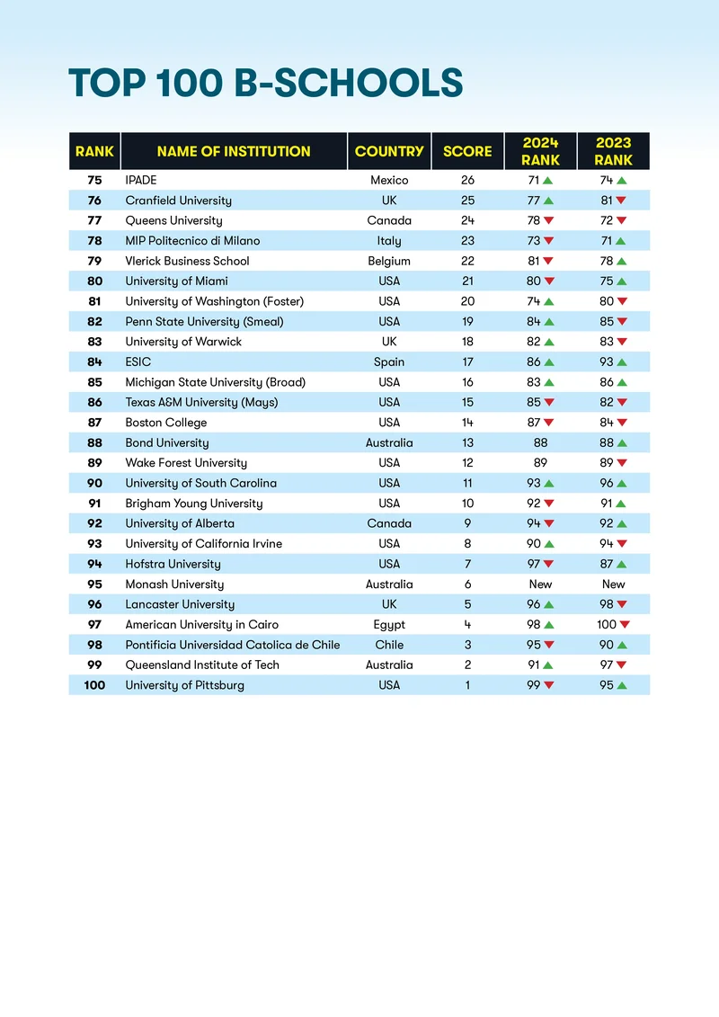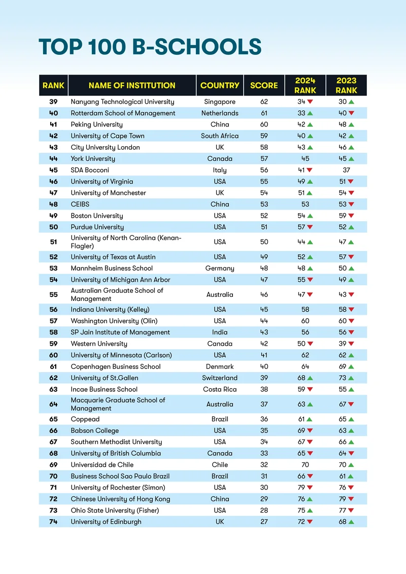 Moving forward, let’s take a look at how Indian Business schools have performed this year. IIM Ahmedabad has lost its spot in the top ten by falling to the eleventh position from its eighth position in 2024. Meanwhile, IIM Calcutta is slowly but steadily progressing by climbing two spots to the thirteenth position from its fifteenth spot last year. In the top 50 rankings, alongside IIM Ahmedabad and IIM Calcutta, the Indian Business School has made it to the list by rising above to the 30th spot from its 38th spot in 2024. Whereas SP Jain Management has a long way to go to make it to the top 50 list as it has once again fallen lower to the 58th spot from its 56th spot. Despite India’s growing business sector, rapidly increasing economy, investments of crores in infrastructure, progress in education and development in technology, it is indeed sad to see only three Indian institutions have made it to the top 50. Hopefully, in the near future we see many more Indian universities make India proud by stepping in the game, challenging themselves and securing their spots in the top ten.