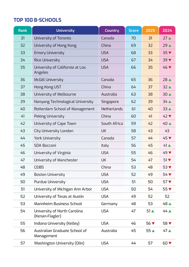 Beyond individual movements, the 2026 rankings highlight a broader shift in business education. Institutions are increasingly being evaluated not just on legacy and academic rigor, but also on employability outcomes, recruiter recognition, global exposure, and curriculum innovation. Strong employer pipelines, international mobility opportunities, and measurable career advancement are now key differentiators.