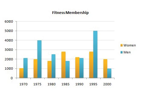 The chart below shows male and female fitness membership between 1970 and 2000.