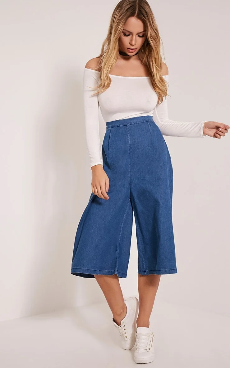 Culottes are loose and flowy pants that can be worn in various ways. They are very comfortable and easy to wear and make you look classy at the same time. You can go from casual to work in minutes. Add a statement necklace with your outfit and pair your culotte with nice strappy heels for the chic look.