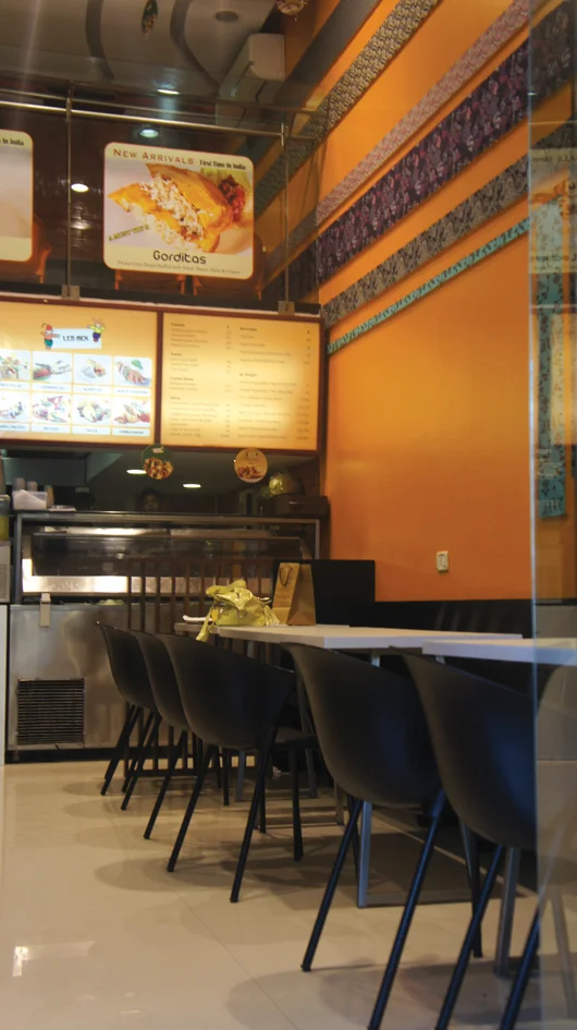 This vegetarian joint at Chowpatty claims to serve authentic Lebanese, Mexican and a mash-up of the two cuisines. You’ll be greeted by yellow, green and orange walls and as you proceed inside, some kitsch poster art of smiling Mexican chilli peppers. The restaurant has an open kitchen too. It gets even better if you happen to be a student as they offer a 20 per cent discount for students. Choose from like Lebanese dishes like hummus with pita, falafel and shawarma rolls, and Mexican preparations like fajitas, quesadillas, burritos and chalupas as well as fusion dishes like Mexican falafel, Mexican hummus and Mediterranean burritos. The falafel in a thick pita pocket was hard to chew while the pita, stuffed with diced cucumbers and tomatoes was sparsely dressed with a watery and bitter labneh. The sundried tomato hummus had a smooth texture and was definitely the standout dish in the meal, even though there was no sign of any sundried tomatoes. We proceeded to the Mexican section with whatever little fervour we could muster. Lebmex uses five ingredients for its Mexican fare– refried beans, cheese, lettuce and red and yellow peppers. The best thing about the tacos was the crisp shell! The complimentary chipotle salsa, which lacked fire, failed to compensate for the blandness. The burrito was a mushy mess of beans. One also gets a complimentary drink. Lebmex assures you that your hankering for anything Mexican or Lebanese will be killed.