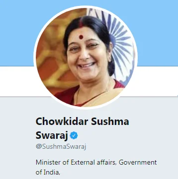 P.S: Do force Sushma ji to add “Chowkidar” to her handle. It’s looking very bad.