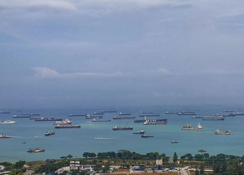 10. Oil tankers parked along Singapore’s coastline amidst the fall in oil consumption
