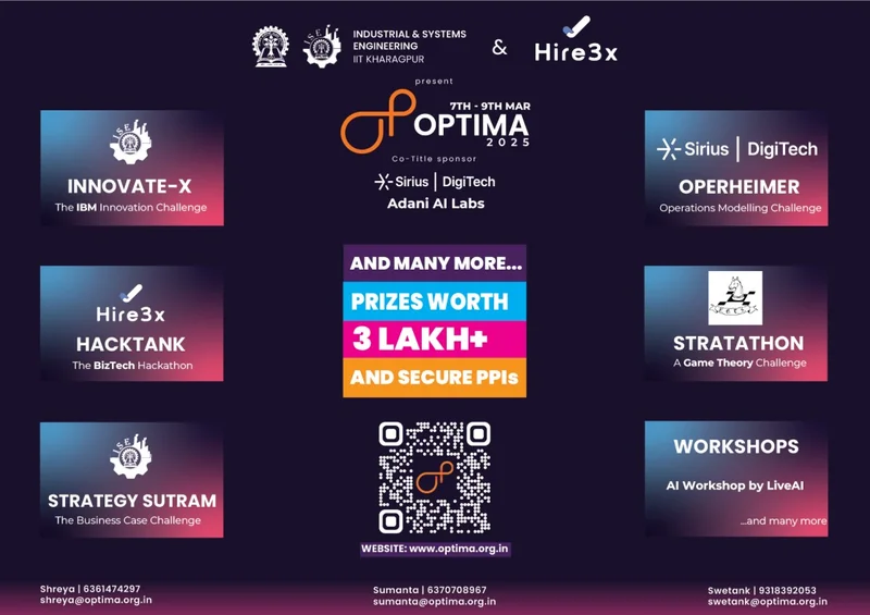 IIT Kharagpur, one of India’s premier institutions for technology and research, is set to host Optima 2025, the flagship Techno-Optimization Fest of the Department of Industrial & Systems Engineering from March 7 to 9, 2025. The event aims to bring together some of the brightest minds in technology, optimization, and business strategy, offering a platform to compete, learn, and network with industry leaders.