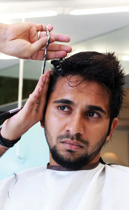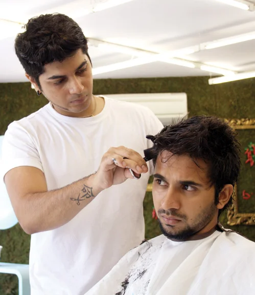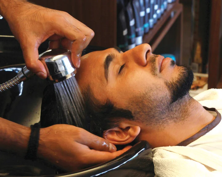 1. Ankit’s hair is first shampooed by the stylist. The shampoo used soothes and softens the dry texture of his hair. This gives it more volume and a sheen.