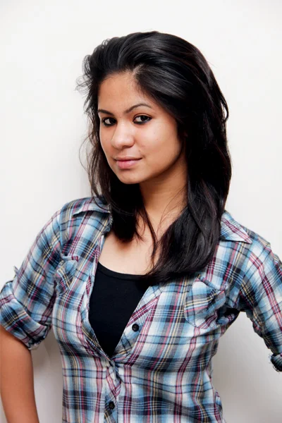 Applied kajal and peach lip gloss