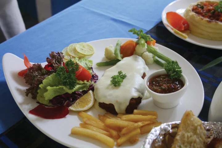 FOOD AND DRINKS: Indulge yourself on the many exotic cocktail mixes while you wait for your food. Try their Sangria which will set the tone for the rest of the day or their creative mixes of local liquor that you wont sample anyplace else. The food is to die for and the presentation is rather spectacular. Go for the Cordon Bleu which will seduce your senses, or go wild with the butter garlic crab. Just remember to keep the cutlery away for this one.