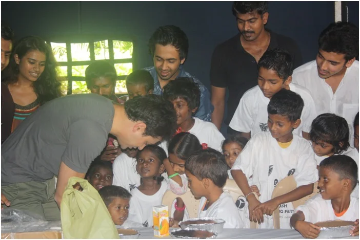 The second part of the campaign was held in Goregaon, where the renowned actor Mr. Imran Khan, joined Talaash for this cause. The warmhearted celebrity didn’t just join us for the drive but also invited 20 children to his shooting sets, giving them the experience of a lifetime. He spoke to the excited little kids, while giving them the T-shirts and food packets, along with the joy of meeting a star.
