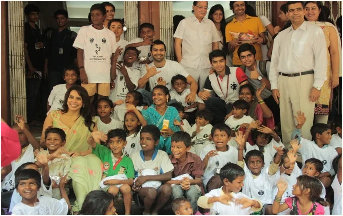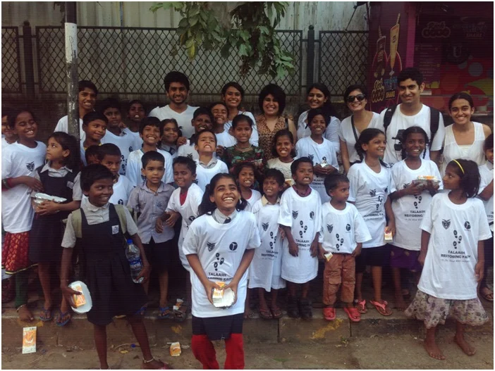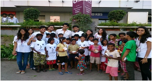 The first part of the campaign was initiated in Jai Hind College itself, where little kids from Churchgate and nearby areas were gathered. The glimmer of hope in their eyes, when they were told that they will be given food was an enticingly sad sight, this hope is what drove Talaash volunteers to find 60 such kids, and bring them to the college campus, where a meal, T-shirt and also two very kind hearted celebrities were waiting for them.