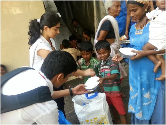 With another 80 packets the volunteers left for Babulnath and Chowpatty, it was at these places where they saw extreme adversity of life in their own city. They met loads of kids eagerly waiting for food, their families giving out blessings for the generosity. Even in their appalling conditions these kids were just like any other we met, happily jumping around on receiving their gifts while sharing their meal with their families. The kids helped finding other people around, gathered their friends and even took the volunteers to their houses. The immeasurable satisfaction that their smiles gave couldn’t be ecpressed in words.