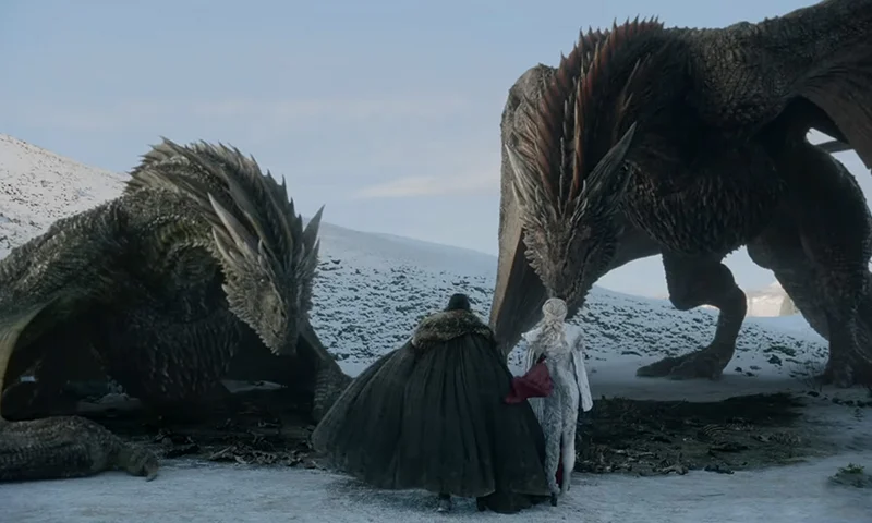 12) Jon and Daenerys are seen mounting the last two dragons,