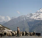 We wind our way up the Pir Panjal Mountains to find ourselves at the rear of a 3 km-traffic jam all the way up to the Rohtang La, which in Tibetan means ‘a pile of corpses’. It is 6 am and the temperature outside is 10°C. We leave our bags in the taxi and start to walk past the gleaming mica schist and snow walls. Glacial melt has turned the mud-track into sludge, making it difficult for cars to pass through. Some trucks have been waiting here for eight hours. Were it not for the breathtaking views of the snowcapped peaks, waterfalls, and the coniferous forests below, this would have been an ordeal. It takes us three hours to cover 5 km, after which the 64 km winding road from Rohtang to Keylong is bumpy but free of traffic. Lahaul and Spiti lie on the leeward slopes of the mountains, their tundra meadows broken only by waterfalls.
