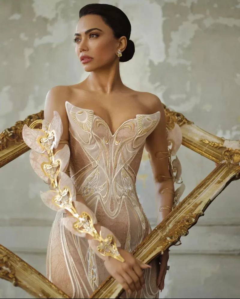 Entrepreneur and philanthropist, Mona Patel made her debut in the grandest way possible. This entire look was curated by Law Roach, the co-host of 2024’s Met Gala. The gown was an Iris Van Herpen couture envisioned by the artist itself. The gown consisted of a train representing flower petals. Along with the stunning gold accents and the beautiful lace details, her arms were adorned with kinetic flower petals which were moving in slow motion that overall made this one of the best outfits of the evening.
