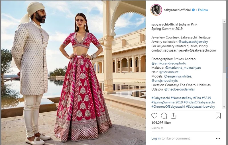 With so many bollywood celebrity and royal weddings taking place, Sabyasachi as a brand has boomed on social media. With so many glamorous and royal brides wrapping themselves up in a Sabyasachi designed cloth, every young girl wishes to wear one at her wedding too. Sabyasachi Mukherjee, on his social media handles, is not just posting images of celebs wearing his designed clothes, but is also engaging in storytelling. To be more specific, Sabyasachi is huge on Instagram. The official handle uploads innumerable videos and images of models and ‘not so famous’ brides as well, posing elegantly which gives out a feeling of royalty. An Instagram user who follows Sabyasachi is sure to have his/her feed flooded with this brand’s posts.