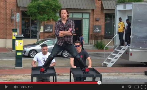 If you’re tire d of Jean-Claude Van Damme’s split video doing the rounds, wat ch Channing Tatum’s spoof in stead. It’s far more accomplished.
