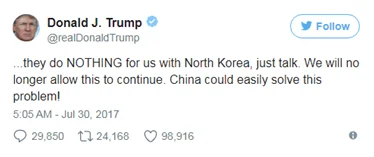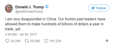 President Trump was at it again by tweeting his disappointment towards China.
