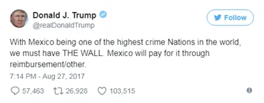 US President Donald Trump kicked up a storm with his US-Mexico border wall promise during his election campaigns. Trump eventually tweeted the following