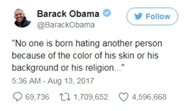 It is no secret that the former President and the current President of the United States could not have more differing views on social issues. After the alt-right terrorism in Charlottesville, Pennsylvania, President Trump failed to condemn the perpetrators responsible in a way that did not endorse racism. However, former President Barack Obama sent out a tweet against the hate crime that eventually became the most like tweet in the history of all things tweeted. What a way to shut things down!