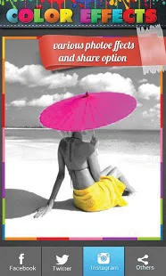 Description: This app converts your photo into a black and white image and then lets you highlight only the portions you like with colour, or change the colour of any item in the picture, giving a new feel and form to old pictures.