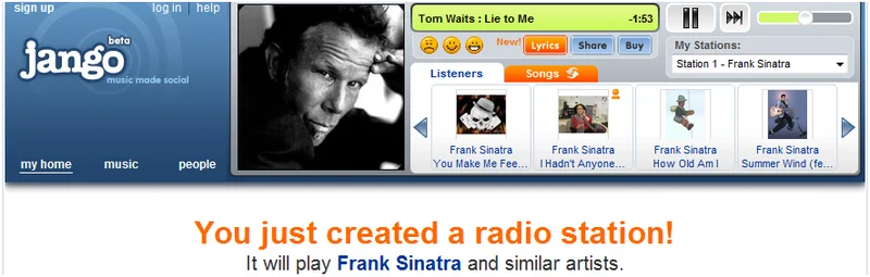 JANGO – Create your own station by searching for an artist you like. The station will then play a song by that artist and randomly play songs by artists similar to the one you picked. Alternatively, you can enter a genre you like and make a station out of it and find music under that genre.