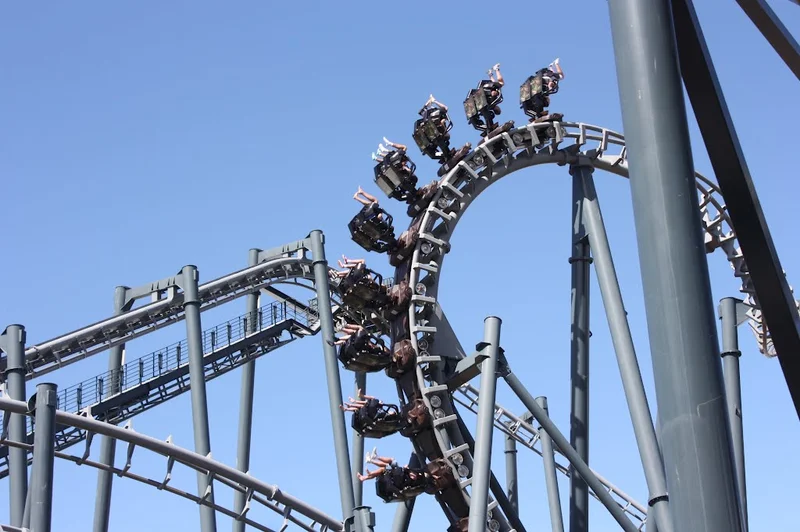 Colossus was the world’s first roller coaster with ten inversions; an exact replica, called the 10 Inversion Roller Coaster. Its Height is 98 feet and the speed is 72 km/hr. The ride has many loops and flips that can make your head spin!