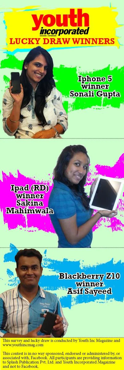 Along with the three main winners of these amazing gadgets, we also have three bonus winners who were awarded a free one year subscription of Youth Incorporated magazine. The three bonus winners are Jui Muniar, Anurag Sharma and Priyanka Patwari.
