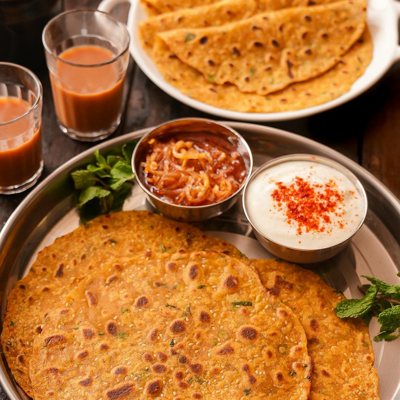8. Parathas – Stuffed with aloo, paneer, gobhi or even leftover dal, these flaky, golden flatbreads are best served hot off the tawa with butter, curd, or pickle. Mornings never tasted so comforting.
