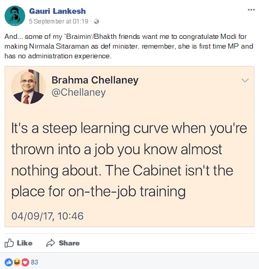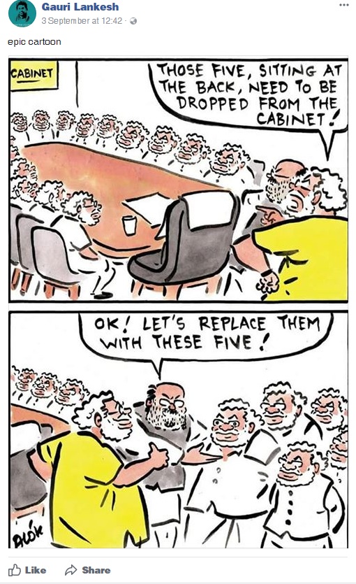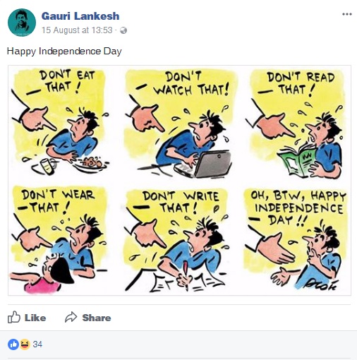 The bold and fearless journalist that Gauri was, she used social media to slam BJP and Modi government voiced her opinions about them. Here are some of the bold statements she’s made on her social media platforms –