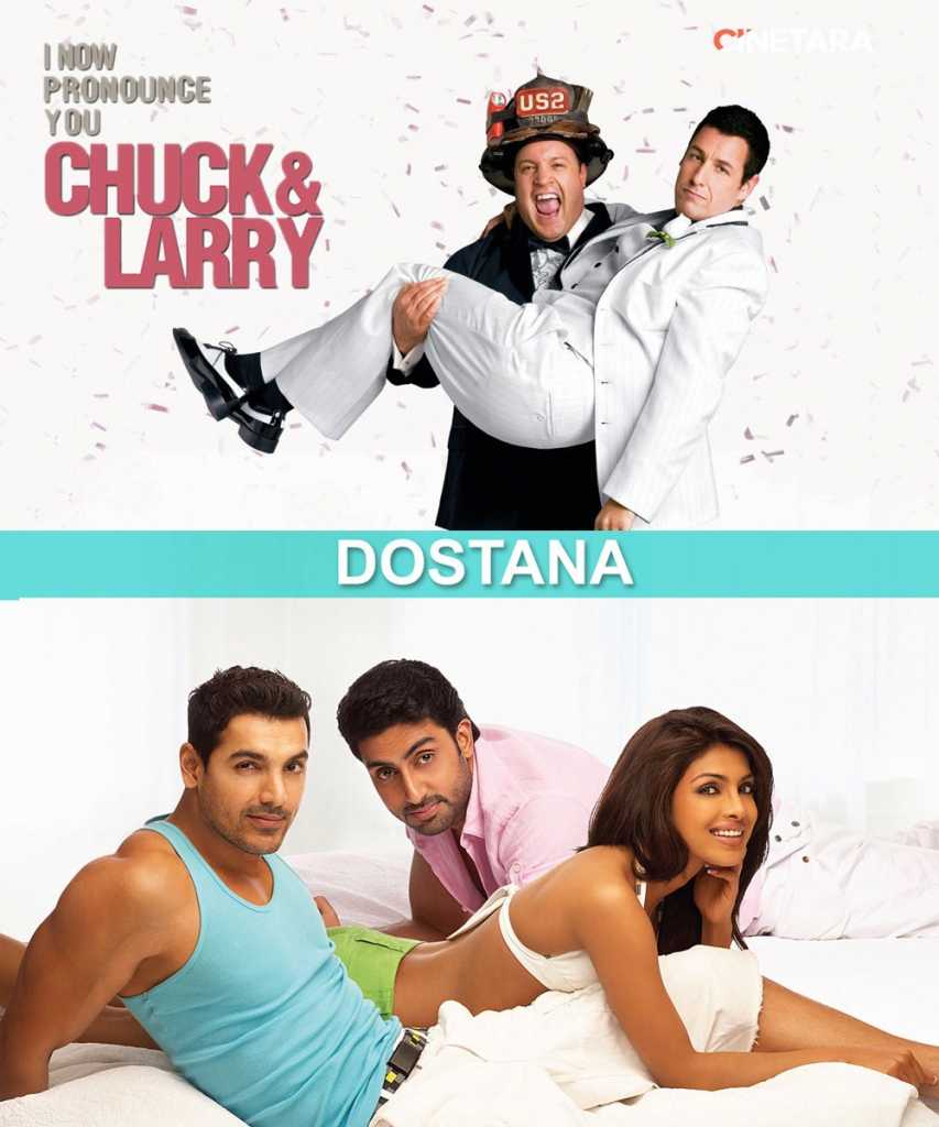 Dostana is about two guys who pretend to be a gay couple in order to secure an apartment. Sounds familiar? Now I Pronounce You Chuck and Larry has the same story line.