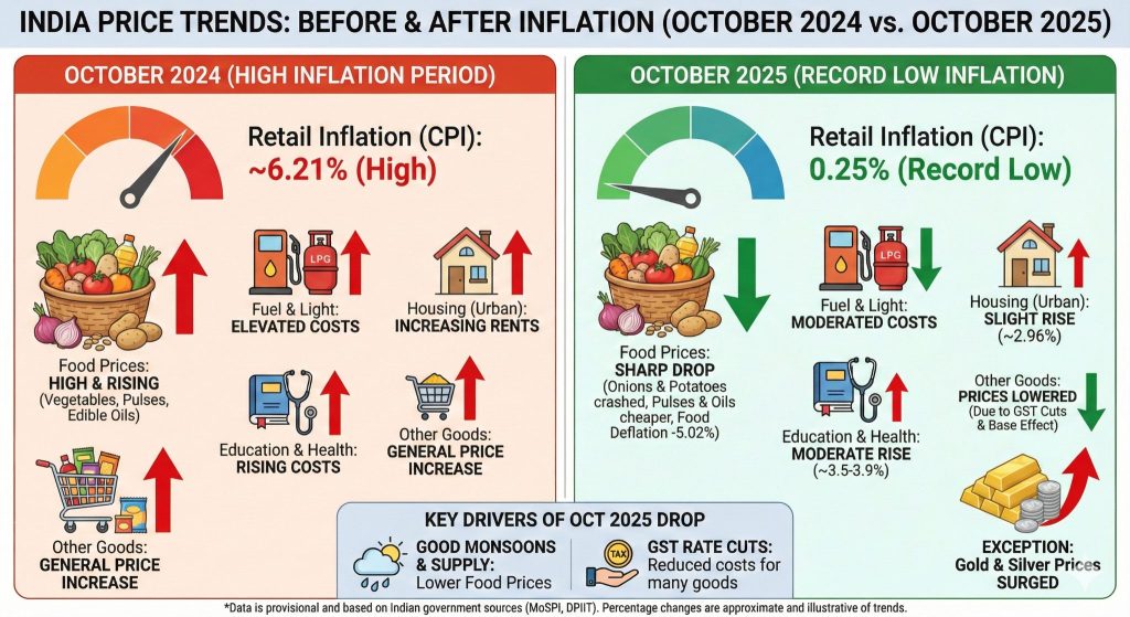 In October 2025, India achieved a landmark moment: retail inflation was only 0.25 per cent year-on-year, which is the lowest level that has ever been recorded since the current inflation monitoring system was introduced in place from 2012.
