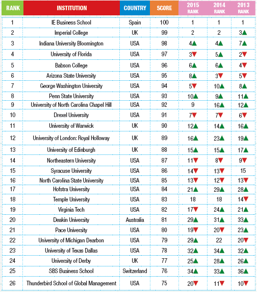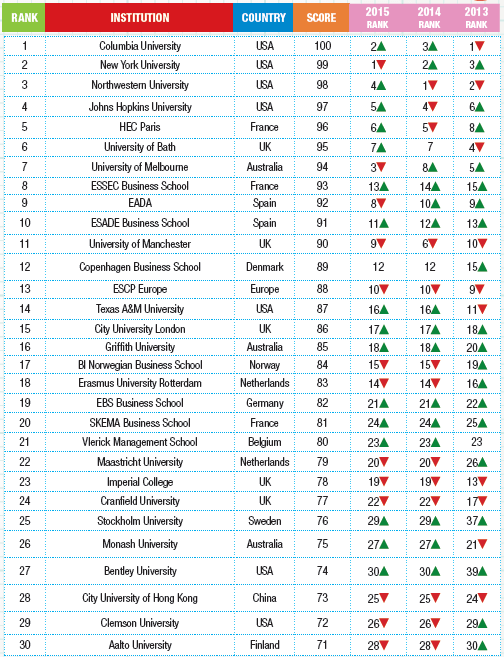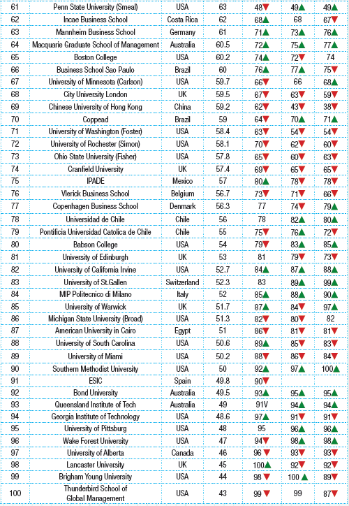 Masters in Management – Certain Masters of Management programs with specializations are also included in the ranking.