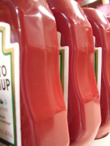 Turn the ketchup bottle upside down till the ketchup reaches the top. Now turn it the right way and pour a spoon or two of baking soda into the bottle. Close the cover but make sure you don’t shake the bottle.