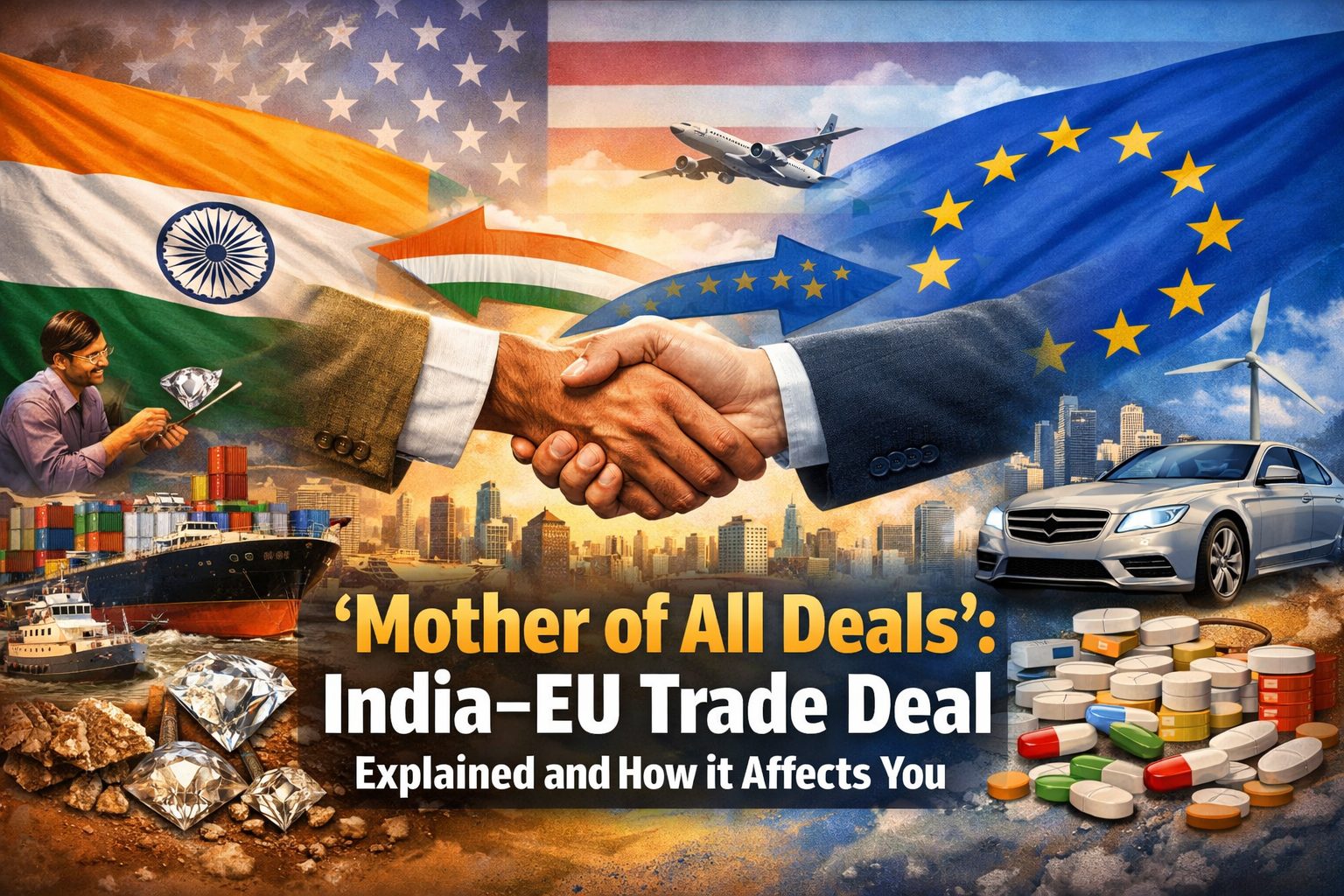Indian exporters: The textile mills, gem traders, leather factories, and pharmaceutical companies suddenly have access to 450 million EU consumers without tariff walls eating into margins. For gems and jewellery workers in cities like Surat, this is meaningful. More exports mean more jobs.