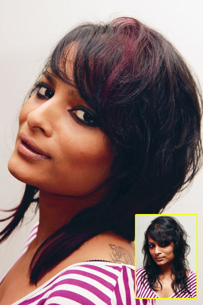 • Deep red tones in the front accentuate her dusky look