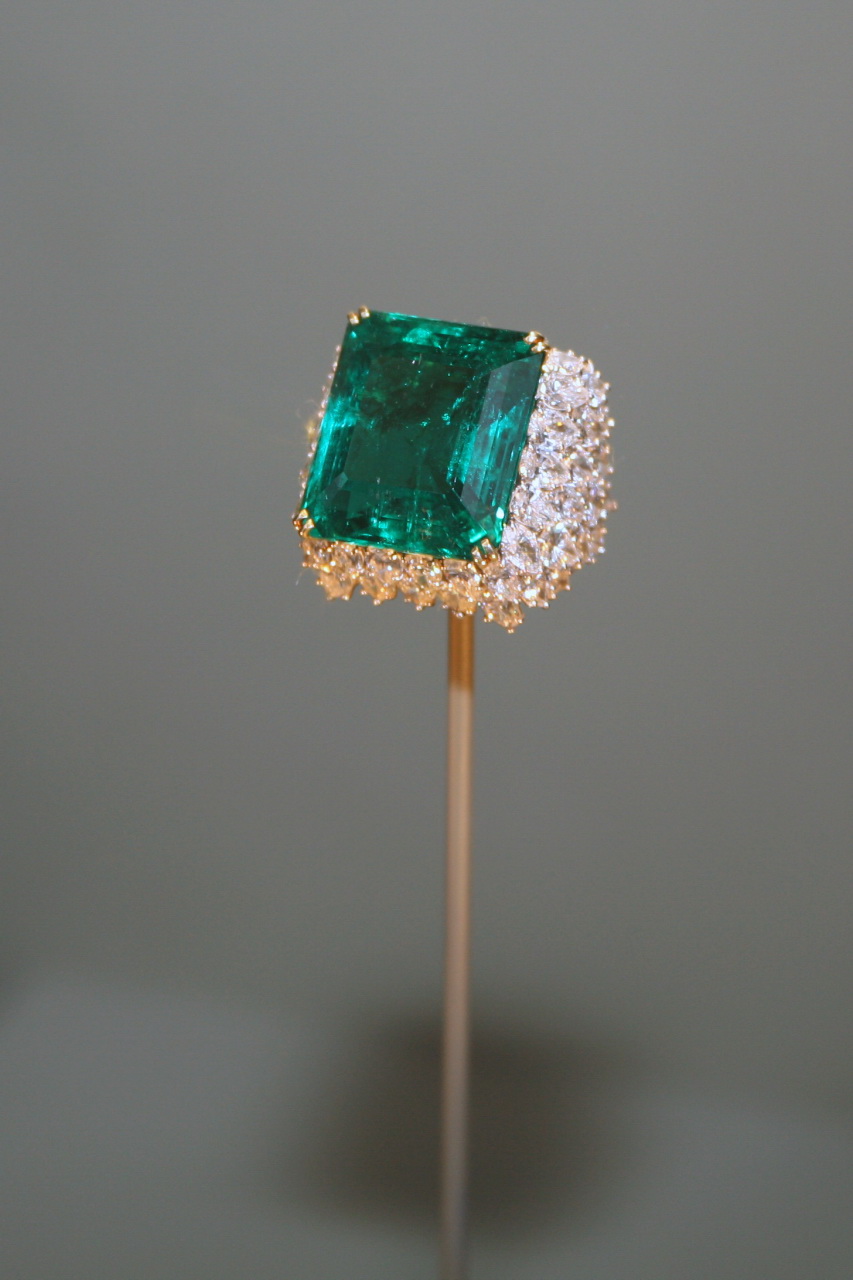 A necklace titled the “Marrakesh” I’d designed in 2012. It is essentially an exquisite stiff Baroque Mesh with rose cut diamonds and an outsized sumptuous simulated Colombian Emerald.